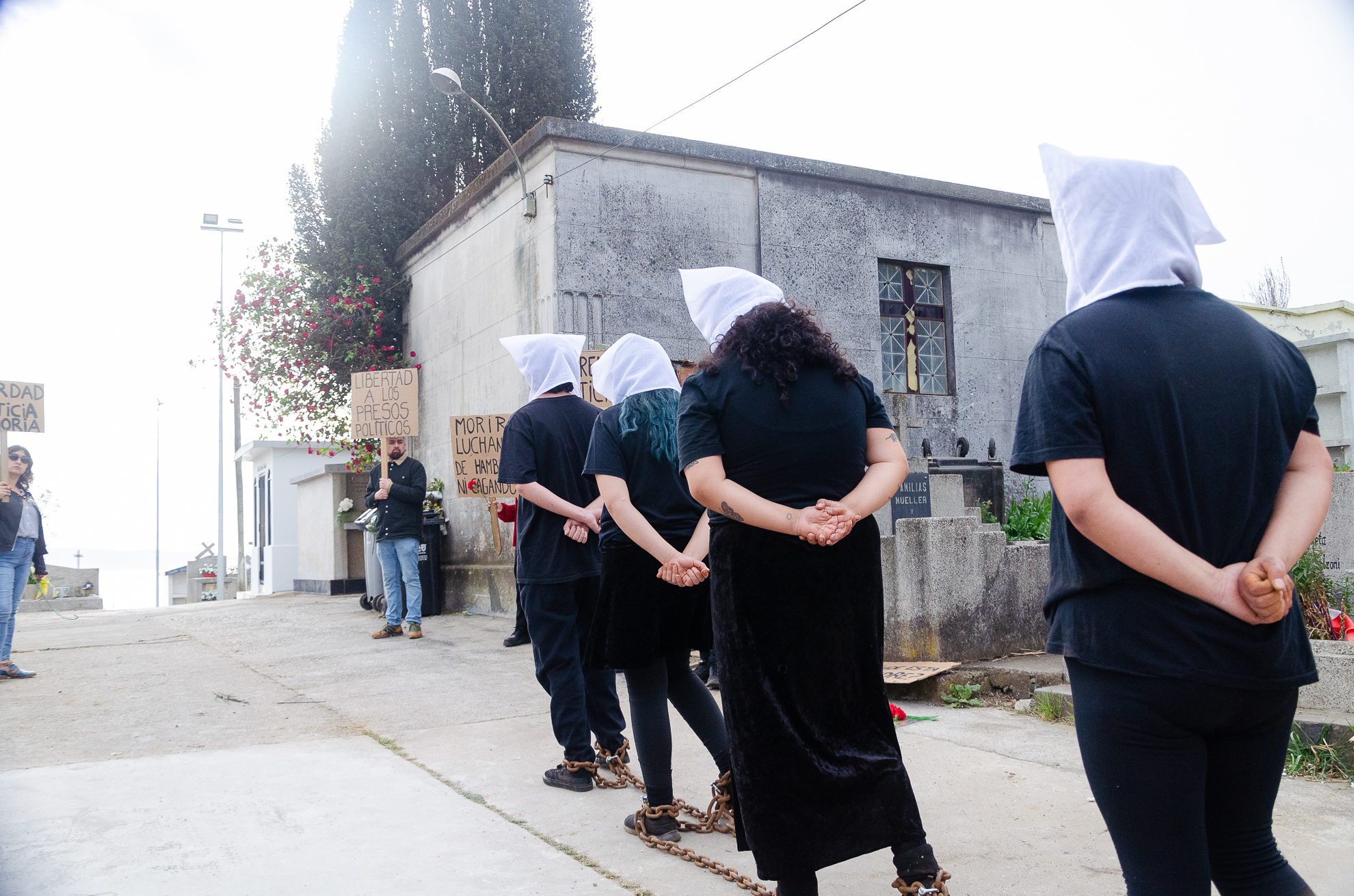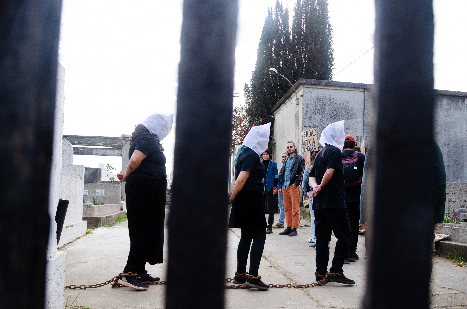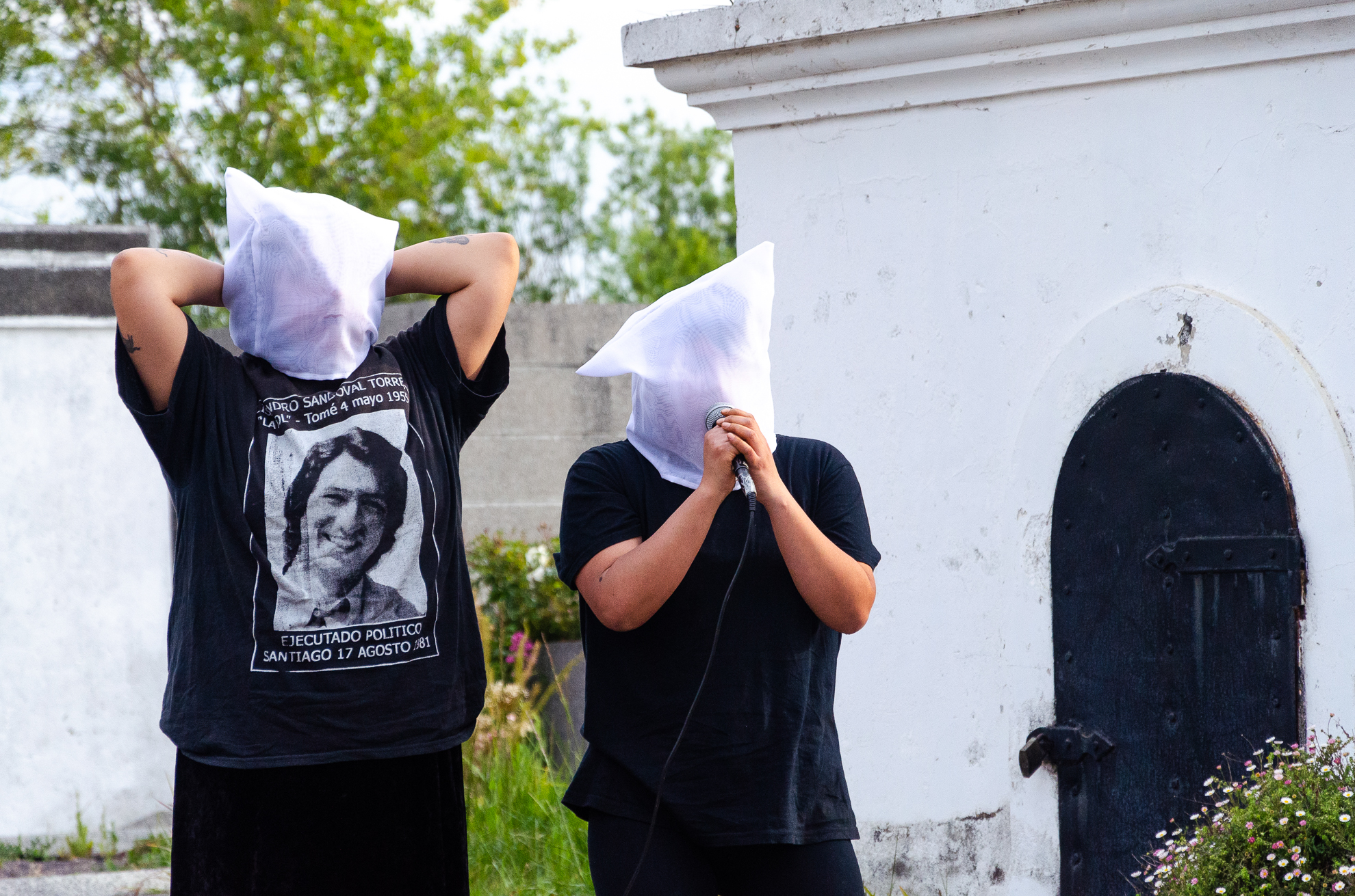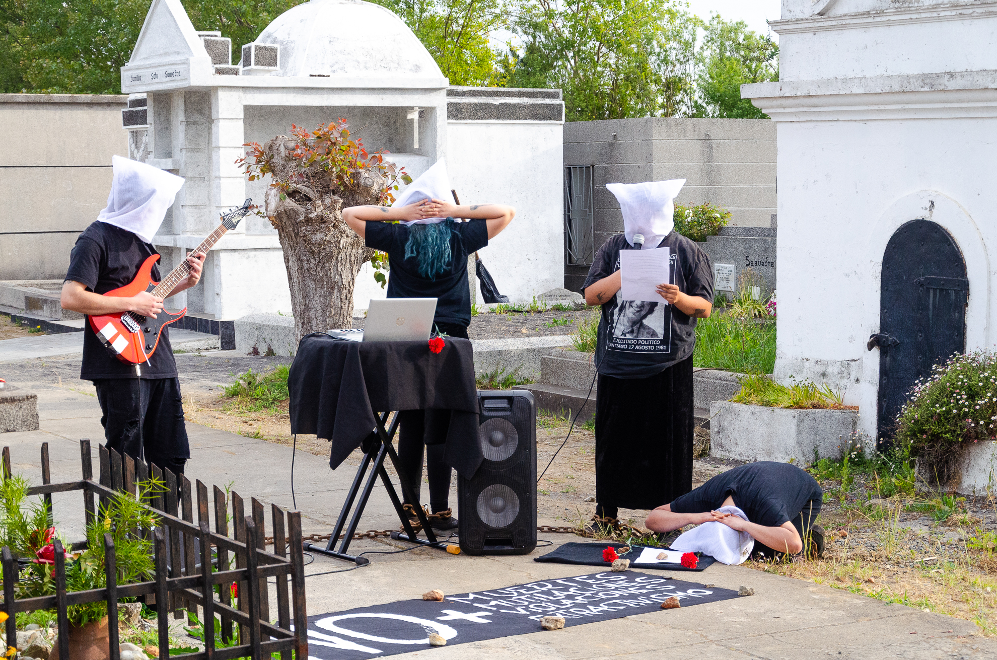 Performance Poético-Musical que reflexiona en torno a las cadenas que nos atan al período más oscuro y triste de nuestro país y sus secuelas aún latentes en nuestro presente. La acción expresa una perspectiva resiliente que intercambia miradas y confronta un lugar simbólico que alguna vez fue testigo de torturas a personas dispuestas a poner la voz y el cuerpo por la resistencia. Abrazar, contener y resignificar, la llama de la insurrección.